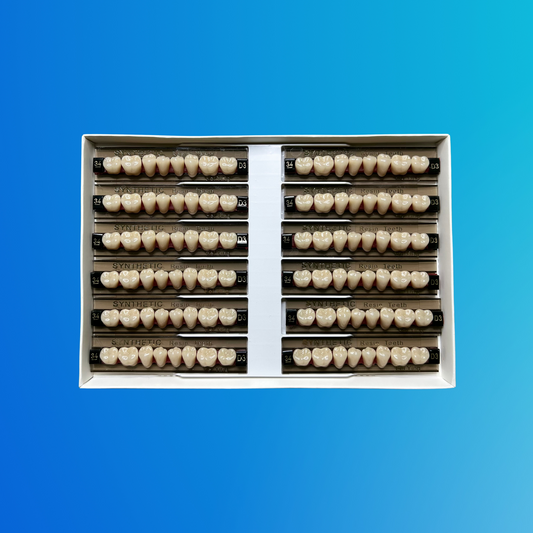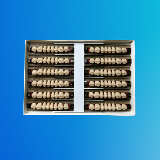 Los dientes de resina D3 ofrecen un tono cálido con matices ligeramente oscuros, ideal para pacientes que buscan una integración natural con dientes originales de tonalidad media. Este color proporciona una apariencia realista y armoniosa, perfecta para prótesis dentales que requieren una estética equilibrada y funcionalidad duradera.