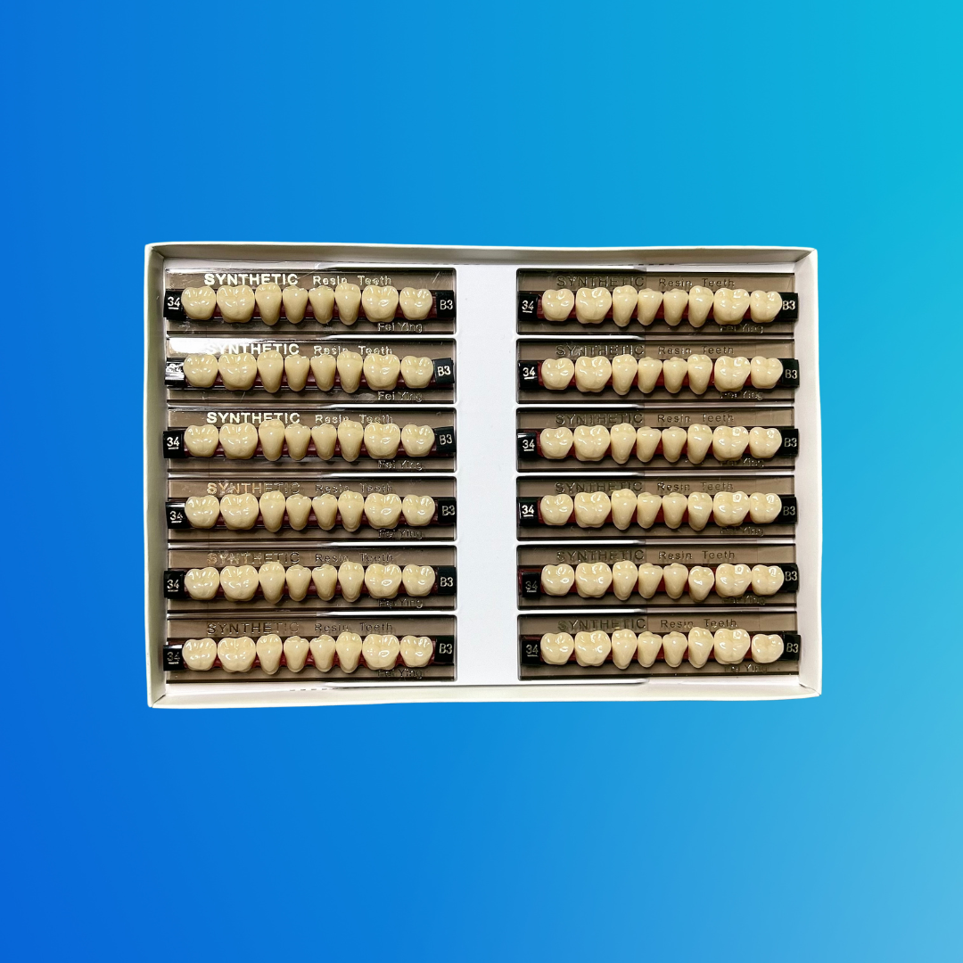 Los dientes de resina B-3 están diseñados para ofrecer una apariencia natural con un tono que proporciona equilibrio entre las necesidades estéticas y funcionales de los pacientes. Este modelo es ideal para aquellos que buscan un tono medio, más claro que las opciones más oscuras como el A4, pero con un nivel de realismo que se integra perfectamente con dientes naturales.